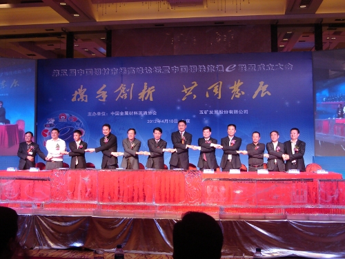 4月10日,中国五矿集团五矿发展牵头并联合其他11家钢贸商成立“中国钢铁流通e联盟”,通过聚合行业优势资源,提升资源使用效率,增强多元化服务能力,实现钢材市场的转型发展。图为联盟首批发起单位负责人签约。