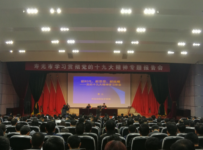 11月25日下午,寿光市举办学习贯彻党的十九大精神专题报告会。邀请中央党校经济学部副主任、博士生导师曹立教授,作了题为“新时代、新思想、新战略”的报告,对十九大精神进行深度解读。