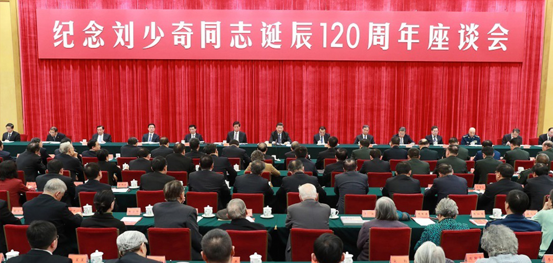 中共中央23日上午在人民大会堂举行座谈会,纪念刘少奇同志诞辰120周年。中共中央总书记、国家主席、中央军委主席习近平发表重要讲话强调,为共产主义奋斗终身的坚定信念,激励着一代又一代共产党人风雨无阻、砥砺前行。历史的接力棒已经交到了我们手中。我们在新的历史起点上进行伟大斗争、建设伟大工程、推进伟大事业、实现伟大梦想,就是刘少奇同志等老一辈革命家一生奋斗的伟大事业的继承和发展。