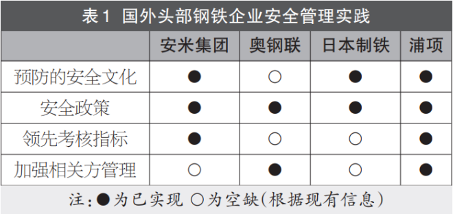 国外头部钢铁企业高度重视安全管理,逐渐形成以预防为主的企业安全文化,并在此基础上持续更新安全政策、调整组织架构和考核指标,创新安全管理举措,加强相关方安全管理,不断提升自身和相关方的安全管理水平。