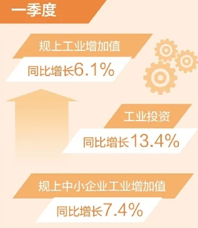 记者近日从工业和信息化部获悉:今年以来,工业经济保持较快增长,高质量发展取得积极成效,总体实现良好开局。一季度,规模以上工业增加值同比增长6.1%,较2023年全年提高1.5个百分点,为8个季度以来的最高值;工业投资同比增长13.4%,规模以上中小企业工业增加值同比增长7.4%。