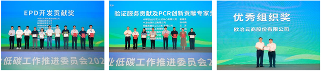 图为EPD开发贡献企业、验证服务贡献及PCR创新贡献专家、优秀组织单位等授证仪式