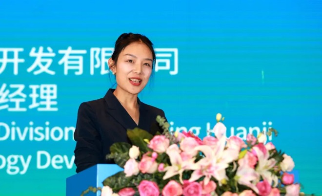 图为中冶赛迪重庆环境咨询有限公司总经理苏丹介绍钢铁低碳服务平台2.0