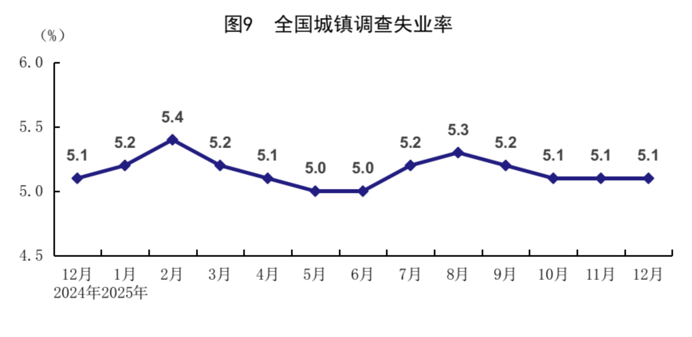 31个大城市城镇调查失业率 | 5.1 | 0.1 (百分点) | 5.1 | 0.0 (百分点) |