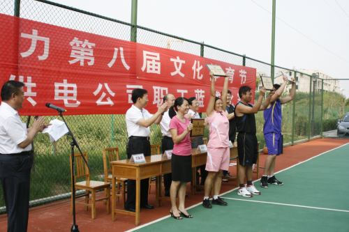 供电公司党委书记霍登科、工会主席张洪忠等领导和全体运动员出席闭幕式并观看了获得第一名的篮球队员进行的表演赛。
