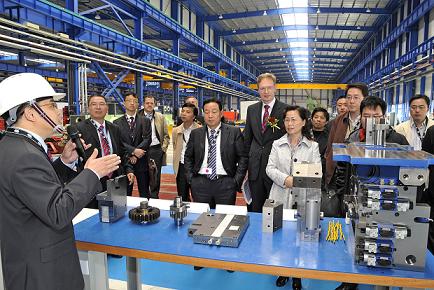 图为SMS Meer全球总裁兼首席执行官Joachim_Schönbeck(图中高者)及其他嘉宾参观新生产基地。