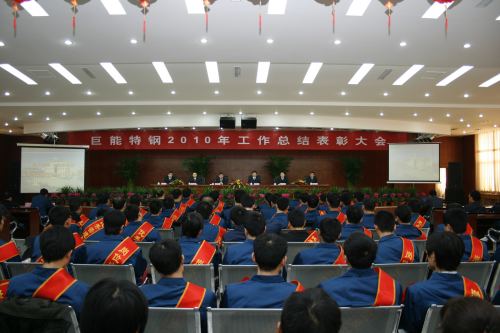 上午9时整,主持会议的党总支书记韩佩璋宣布大会开始。会议回顾总结了2010年工作,表彰奖励了2010年在生产生产经营、综合管理、项目筹建、节约增效、能效对标、亮点工作以及安全标准化达标活动等方面比较突出的先进单位、先进集体、安全标准化达标班组和先进个人。全面部署了2011年的各项工作任务,强化规范管理,艰苦创业,努力实现创新发展。